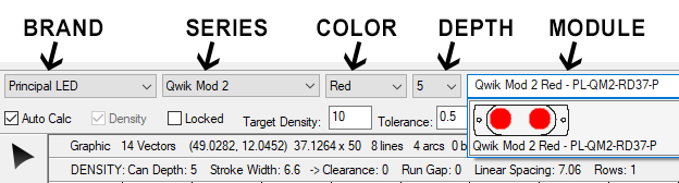 Questo processo inizia proprio all’inizio del flusso di lavoro, aiutandoti a selezionare il LED giusto in primo luogo. La barra delle proprietà di PowerFlow fornisce diversi livelli di filtro, tra cui Marca, Serie, Colore, Profondità e infine il modulo stesso. In molti casi, il risultato di questo filtraggio lascia un solo modulo.